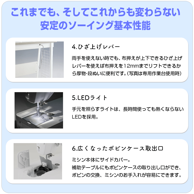 押え圧調整 / ドロップフィード / ニーリフター / LDEライト